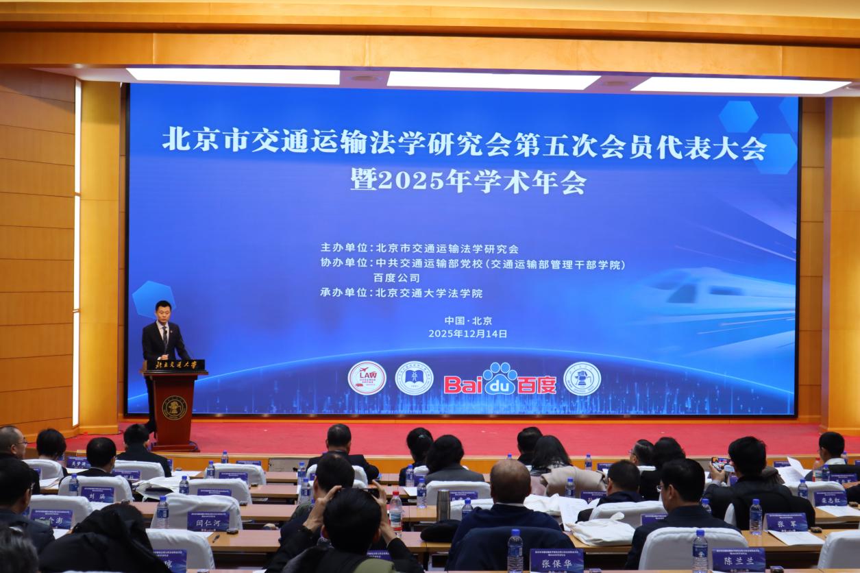 2025年12月14日,北京市交通运输法学研究会第五次会员代表大会暨2025年学术年会在北京交通大学举行。本次会议由北京市交通运输法学研究会主办,中共交通运输部党校(交通运输部管理干部学院)和百度公司协办,老虎机赌场-老虎机娱乐城-老虎机游戏在线玩 承办。北京市法学会党组成员、专职副会长王桂芳,北京交通大学党委常委、副校长艾渤,交通运输部党校第一副校长、交通运输部管理干部学院党委书记刘鹏飞,交通运输部科学研究院副院长、总工程师王先进,北京市交通委法制处处长刘小野,百度公司副总裁吴梦漪等领导和嘉宾出席开幕式并致辞,交通运输部法制司条法二处处长杜瑞孔、国家铁路局科法司法制处处长江水长、国家邮政局发展研究中心政策法规处处长耿艳、北京市交通委法制处副处长吴建雄、北京市法学会联络部副主任程露茜、北京交通大学社科处副处长吴静等出席会议。